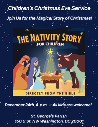 St. George's Episcopal Church warmly invites you to celebrate the wonder and joy of Christmas with us! On Christmas Eve, join us at 4:00 p.m. for our Children's Service, where we'll gather to hear the timeless story of Christ's birth and sing beloved carols together. Then at 7:00 p.m., we'll celebrate our principal service—a Festival Christmas Eucharist with a beautiful Carol prelude—as we mark this most holy and sacred night.
